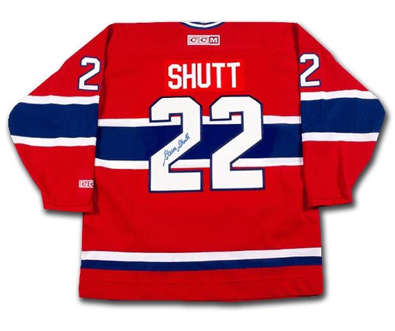 Hockey Legend Steve Shutt Autographed Red Montreal Canadiens Jersey The jersey is professionally sown with name and Number s professionally sown on.