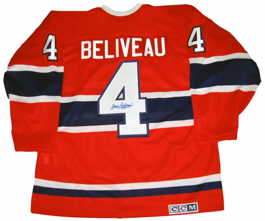 Hockey Legend Jean Beliveau Autographed Red Montreal Canadians Jersey.