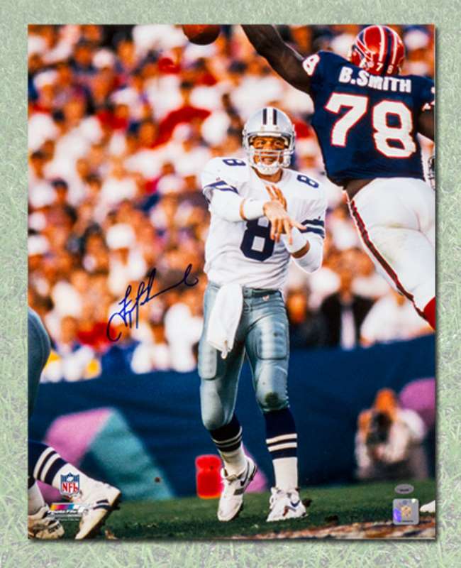 Autograph Authentic AIKT50803A Troy Aikman Dallas Cowboys Autographed Football Game Action 16 x 20 in. Photo