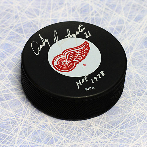 Autograph Authentic BATA106050 Andy Bathgate Detroit Red Wings Autographed Hockey Puck with HOF Note