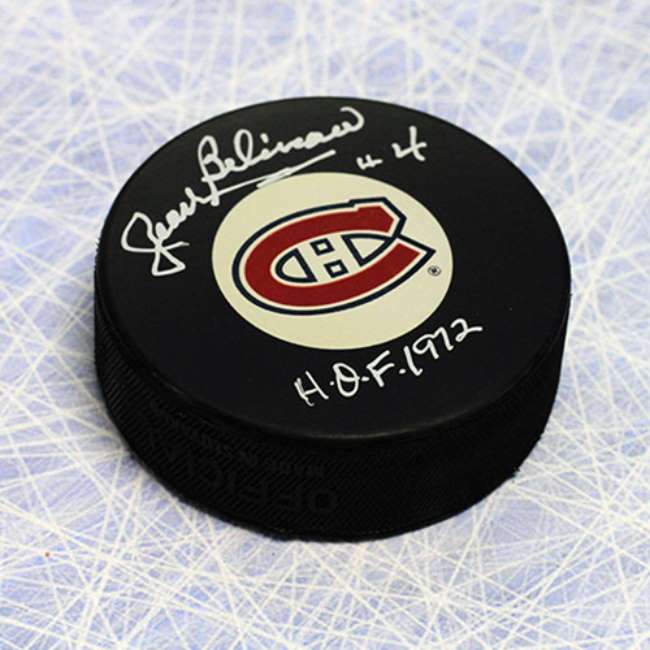 Jean Beliveau Montreal Canadiens Autographed Puck with HOF 1972 Note.