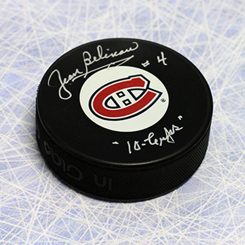 Autograph Authentic BELJ105054 Jean Beliveau Montreal Canadiens Autographed Puck with 10 Cups Note