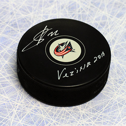Autograph Authentic BOBS170051 Sergei Bobrovsky Columbus Blue Jackets Signed Hockey Puck with 2013 Vezina