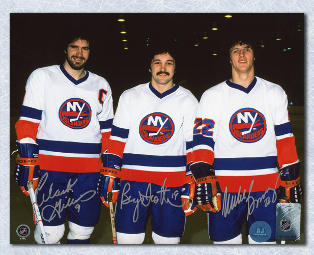 Autograph Authentic BOSM11504B Bossy Trottier and Gillies NY Islanders Triple Signed Trio Grande 11 x 14 in. Photo