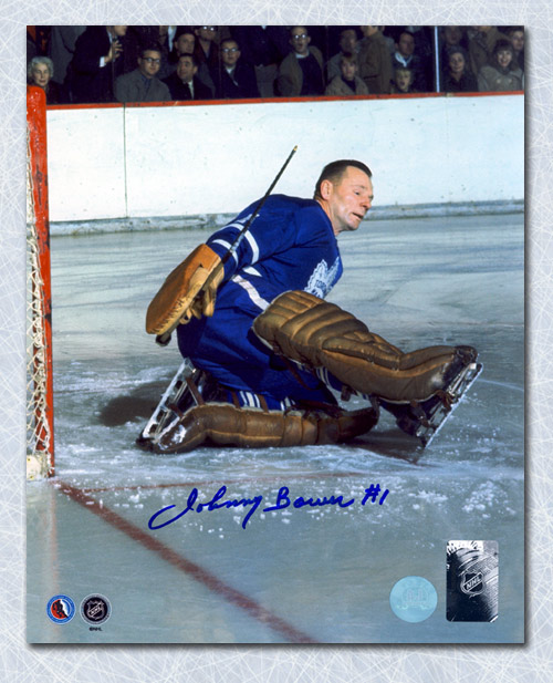 Autograph Authentic BOWJ104030 Johnny Bower Toronto Maple Leafs Autographed Goalie Pad Save 16 x 20 in. Photo