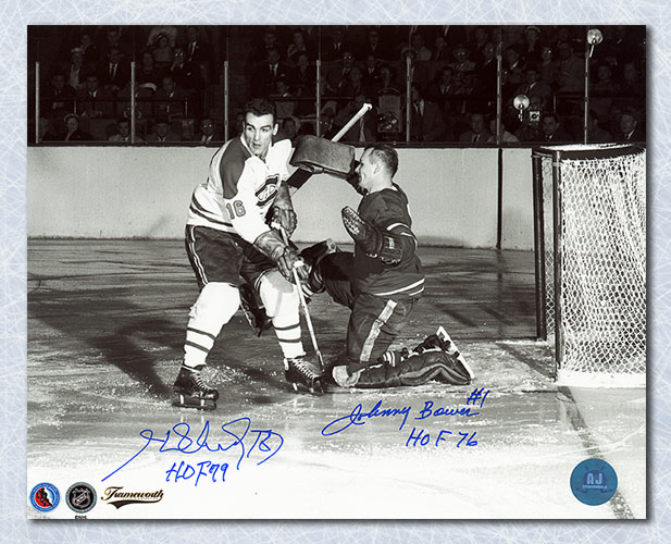 Autograph Authentic BOWJ104033 Johnny Bower vs Henri Richard Dual Signed Leafs Canadiens Rivalry 16 x 20 in. Photo