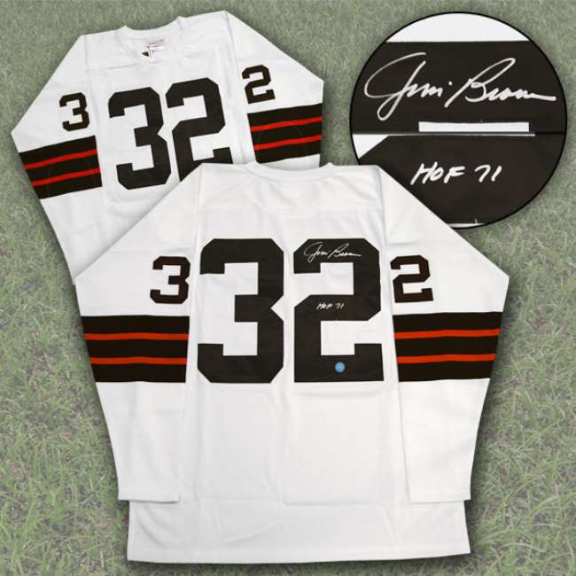 Jim Brown Cleveland Browns Autographed Mitchell & Ness Football Jersey.