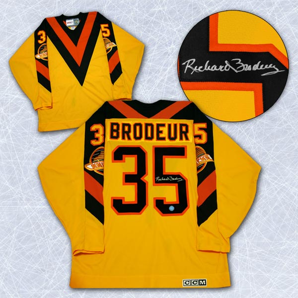 Autograph Authentic BROR134001 Richard Broduer Vancouver Canucks Signed Flying V Retro CCM Hockey Jersey