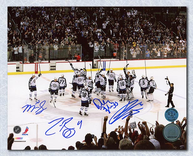 Autograph Authentic BYFD121032 Byfuglien Pavelec Bogosian and Scheifele Winnipeg Jets Signed Return 16 x 20 in.