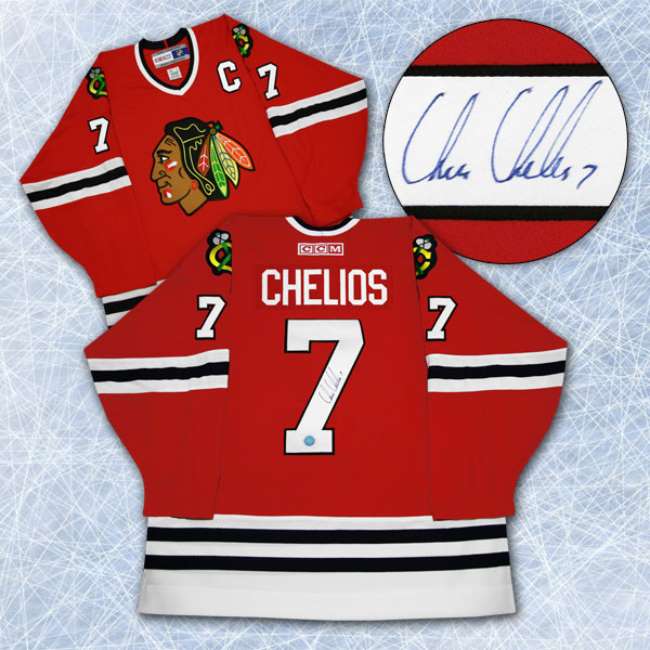 Chris Chelios Chicago Blackhawks Autographed 1992 Retro CCM Hockey Jersey.