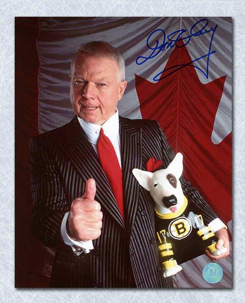 Autograph Authentic CHED000021 Don Cherry Canadian Flag Autographed Thumbs Up with Blue 8 x 10 in. Photo