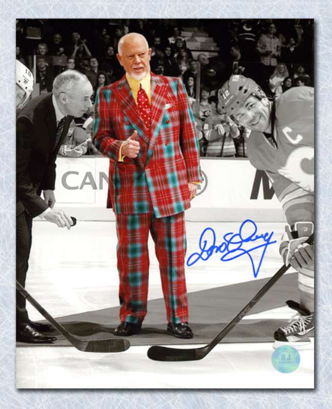 Don Cherry Autographed Plaid Suit Flames Faceoff Spotlight Photo.