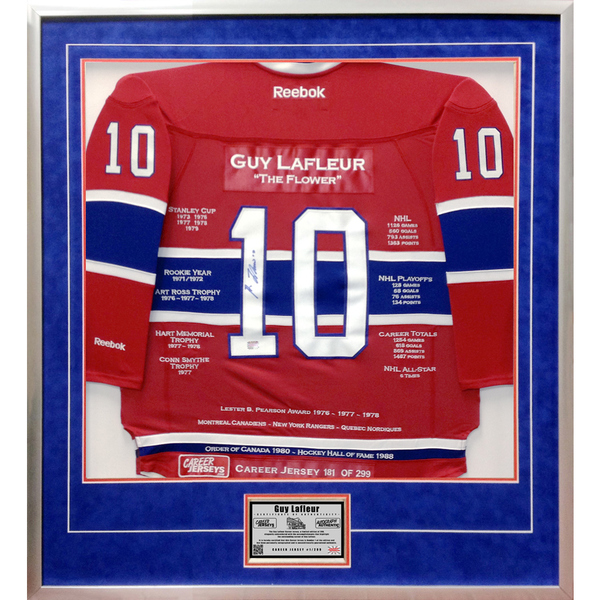 Features- The Guy Lafleur Career Jersey is an autographed limited edition jersey very rare and a great investment.