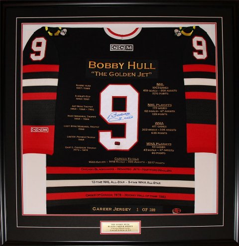 Features- The Bobby Hull Black Career Jersey is an autographed limited edition jersey very rare and a great investment.