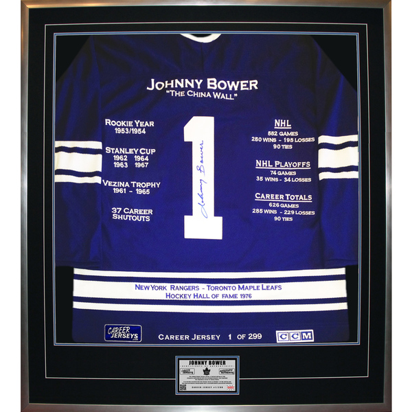 Features- The Johnny Bower Career Jersey is an autographed limited edition jersey very rare and a great investment.