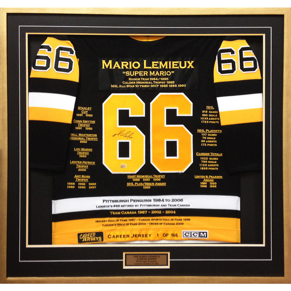 Features- The Lemieux Career Jersey is an autographed limited edition jersey very rare and a great investment.