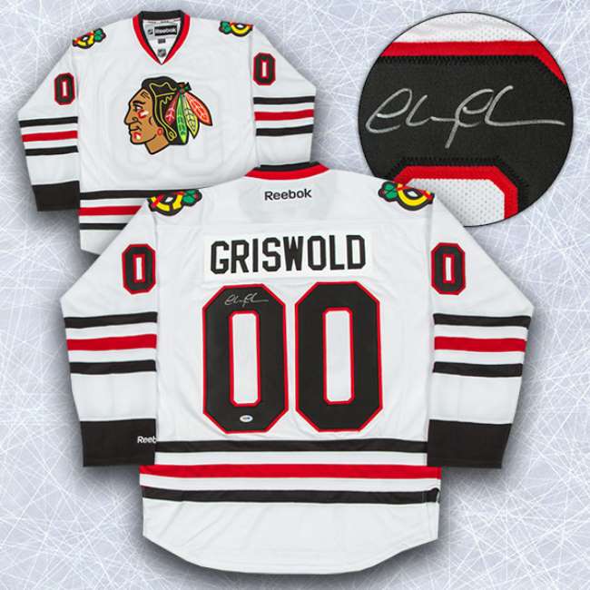 Chevy Chase Autographed Chicago Blackhawks Clark Griswold Jersey.