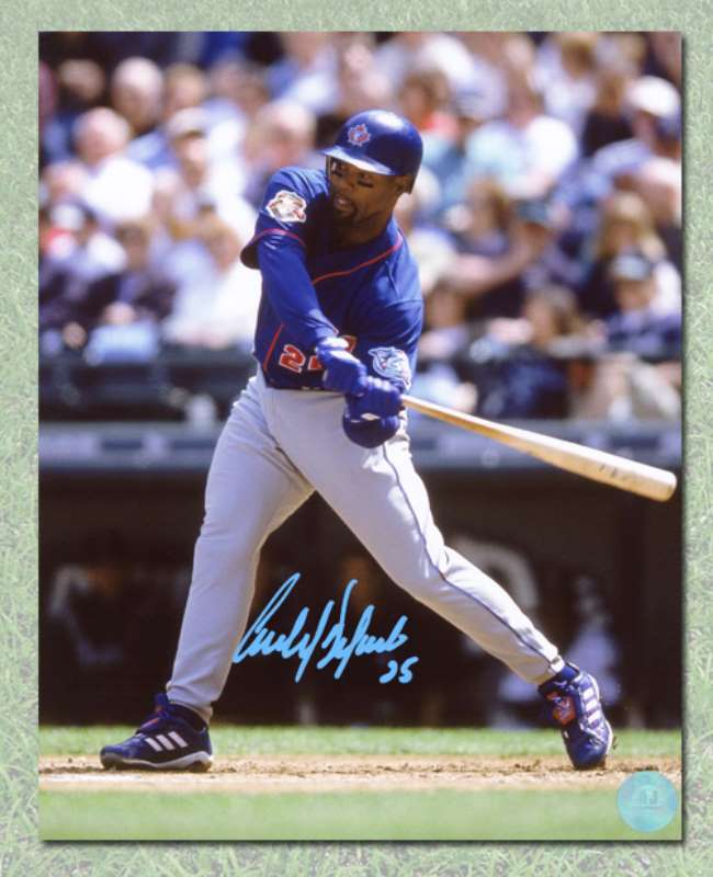 Autograph Authentic DELC32802B Carlos Delgado Toronto Blue Jays Autographed Blue Jersey Batting 8 x 10 in. Photo