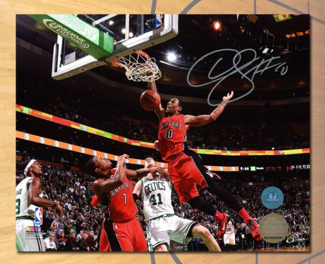 DeMar DeRozan Toronto Raptors Autographed Slam Dunk Photo.