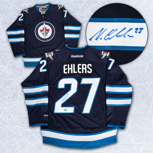 Autograph Authentic EHLN121000 Nikolaj Ehlers Winnipeg Jets Autographed Blue Reebok Premier Hockey Jersey