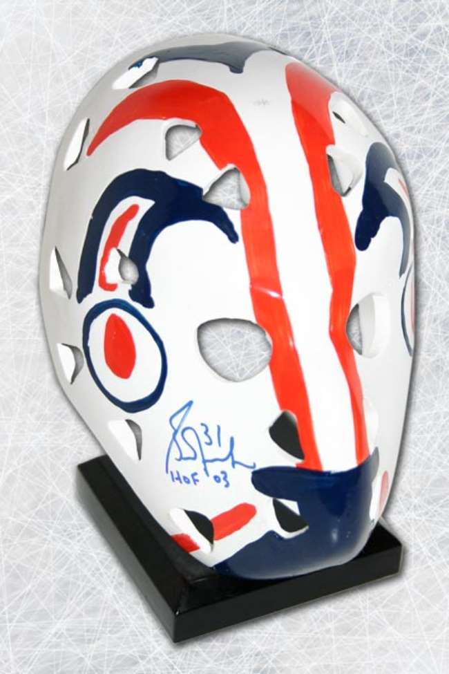 Grant Fuhr Edmonton Oilers Autographed Replica 6 Vezina Goalie Mask.