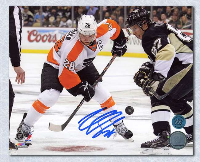 Claude Giroux Philadelphia Flyers Autographed vs Crosby Face Off Photo.