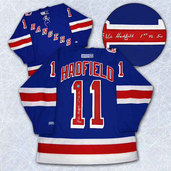 Autograph Authentic HADV103000 Vic Hadfield New York Rangers Signed Retro CCM Jersey with 1st To 50 Note