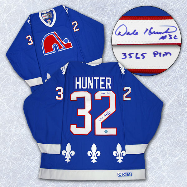 Autograph Authentic HNTD129000 Dale Hunter Quebec Nordiques Signed Retro CCM Jersey with PIM Inscription