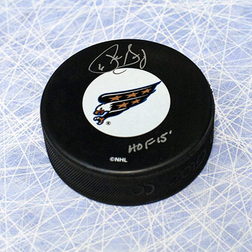 Autograph Authentic HOUP127050 Phil Housley Washington Capitals Autographed Hockey Puck with HOF Note