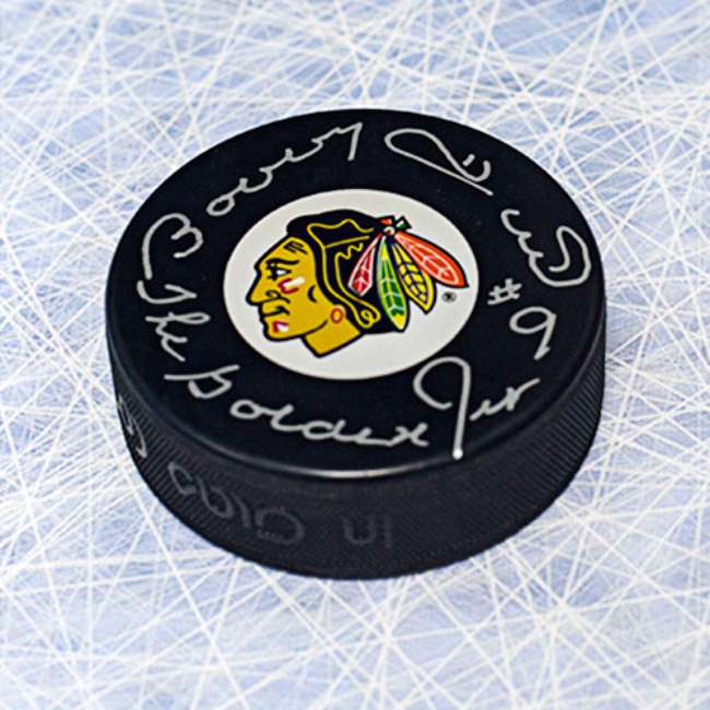 Autograph Authentic HULL101052 Bobby Hull Chicago Blackhawks Autographed Hockey Puck with Golden Jet inscription