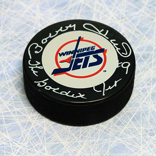 Autograph Authentic HULL121051 Bobby Hull Winnipeg Jets Autographed Hockey Puck with Golden Jet Inscription