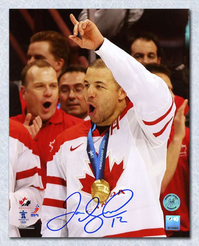 Jarome Iginla Team Canada Autographed 2010 Olympic Gold Medal Photo.