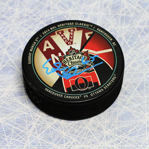 Autograph Authentic KARE122052 Erik Karlsson Ottawa Senators Autographed 2014 Heritage Classic Hockey Puck