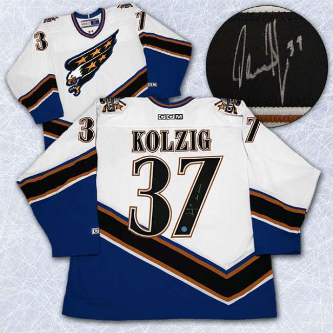 Autograph Authentic KOLO127000 Olaf Kolzig Washington Capitals Autographed Retro Ccm 00 Vezina Jersey