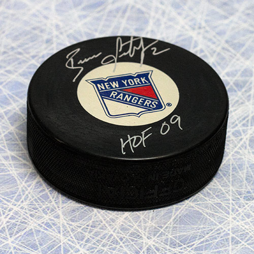 Autograph Authentic LEEB103051 Brian Leetch New York Rangers Autographed Hockey Puck with HOF Inscription