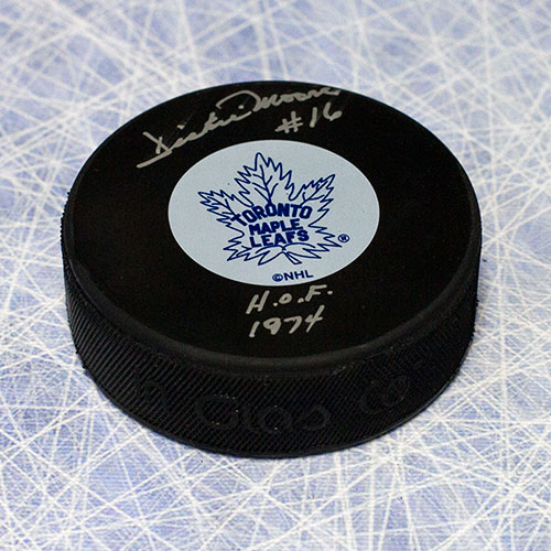 Autograph Authentic MOOD104050 Dickie Moore Toronto Maple Leafs Autographed Hockey Puck with HOF Inscription