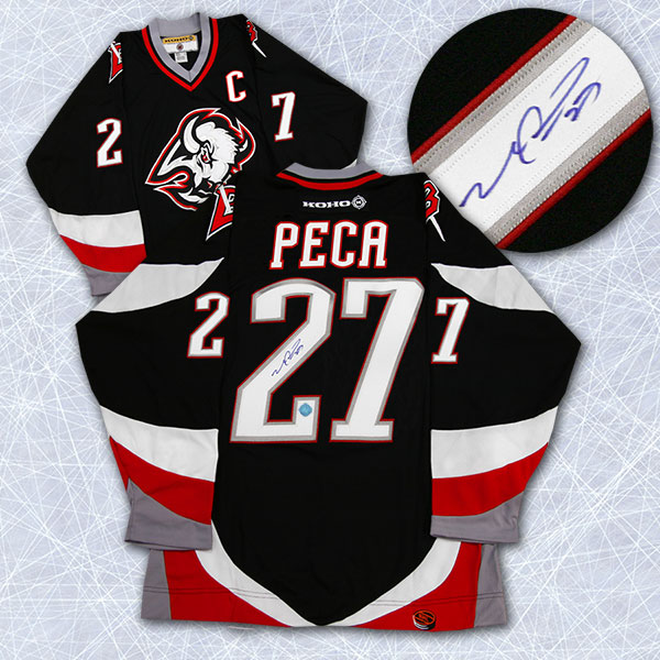 Autograph Authentic PECM113000 Mike Peca Buffalo Sabres Autographed Black and Red Retro Hockey Jersey
