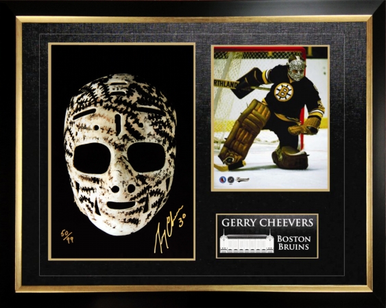 Autograph Authentic photo-cheevers-mask The Mask Autographed By Gerry Cheevers - Double Photo - Limited Edition of 99