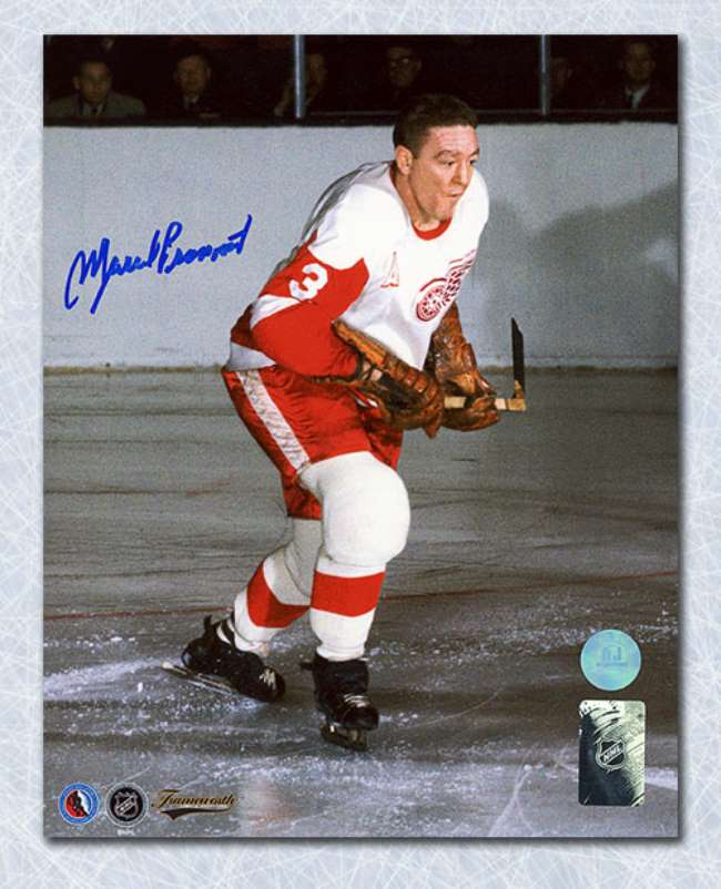 Marcel Pronovost Autographed Game Action Photo.