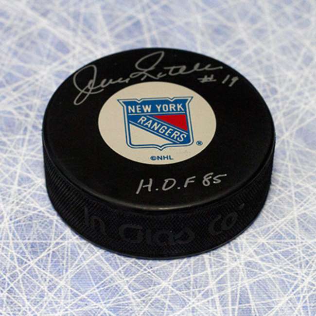 Jean Ratelle New York Rangers Autographed Hockey Puck with HOF Note.