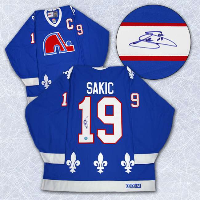 Joe Sakic Quebec Nordiques Autographed Retro CCM Hockey Jersey.