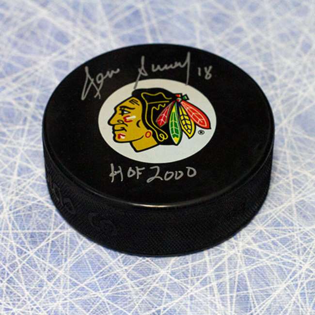 Denis Savard Chicago Blackhawks Autographed Hockey Puck with HOF Note.