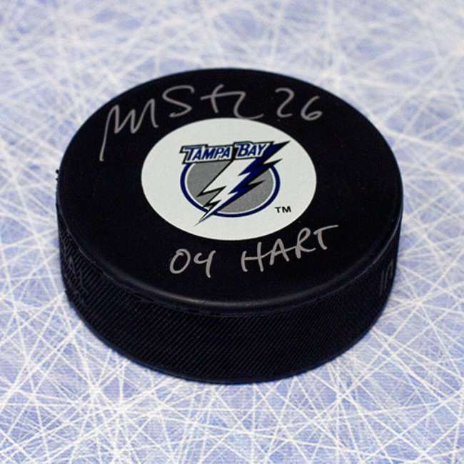 Louis Tampa Bay Lightning Autographed Hockey Puck with 04 Hart Note.