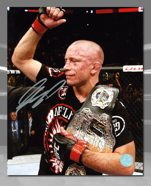 Autograph Authentic STPG003028 Georges St. Pierre GSP Signed MMA Fight Champion with UFC Belt 8 x 10 in. Photo
