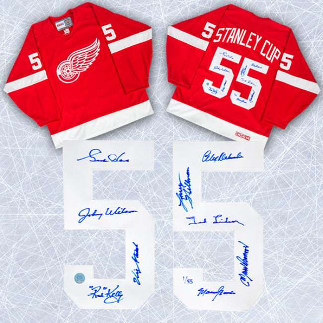 Autograph Authentic TEAM10600A 1955 Detroit Red Wings Team Signed Cup Jersey Number 55